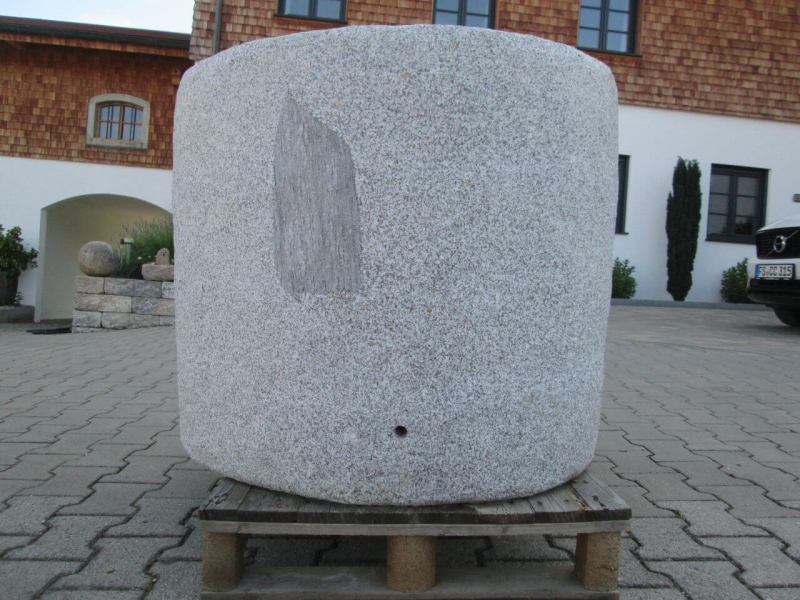 Der runde Granitbrunnen im rustikalen Stil hat die Maße ca. 90 cm im Durchmesser und 72 cm in der Höhe.