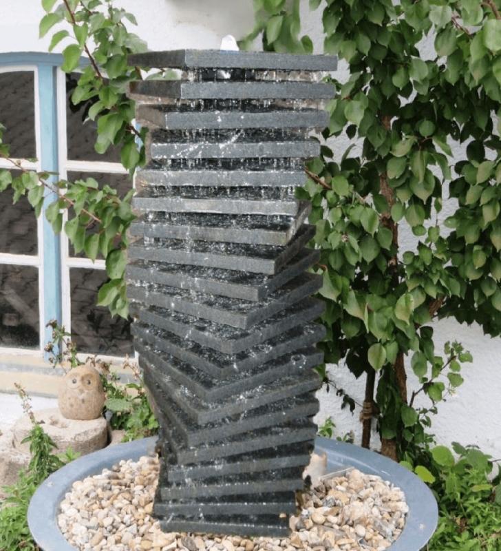 Stellen Sie sich vor, wie der Plattenbrunnen in Ihrem Garten Sie mit seiner sanften, beruhigenden Ausstrahlung umgibt,